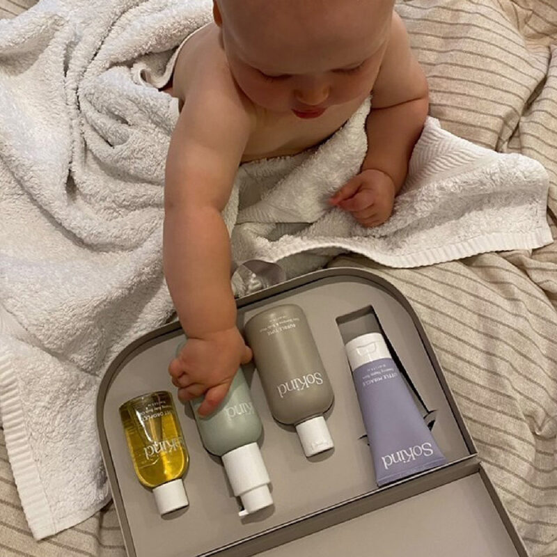 Alle 4 producten zijn gemaakt met zorgvuldig gekozen, natuurlijke ingrediënten om de huid zachtjes te voeden, te beschermen en gehydrateerd en zijdezacht te houden. De producten zijn gebaseerd op natuurlijke ingrediënten zoals avocado-, amandelolie, tarwe- en jojobaolie, allemaal selecties van de beste oliën uit de natuur om de huid van je baby glad en gezond te houden.